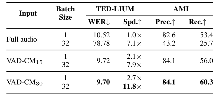 - External Voice Activity Detection (VAD) model을 사용하여 input audio를 pre-segmenting