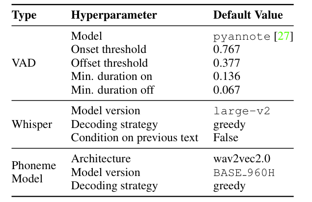 - 이때 VAD model은 서로 다른 language에 대해 robust 해야 하고, Alignment phoneme model은 해당 language에 대해 train 되어야 함