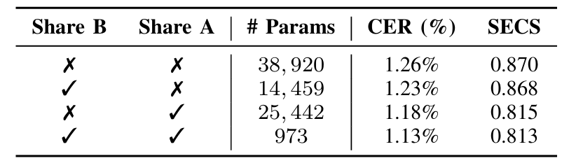 - 특히 $B'$의 parameter 수는 total trainable parameter의 $2/3$를 차지하므로, 해당 sharing approach를 통해 parameter 수를 크게 절감할 수 있음
