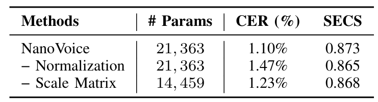 - $(B,A)$ : 모든 matrix를 share 하는 setup - 결과적으로 NanoVoice는 $A'$을 batch-wise manner로 활용하고 모든 reference voice에 대해 $B$를 share 하는 $(B',A)$를 채택함