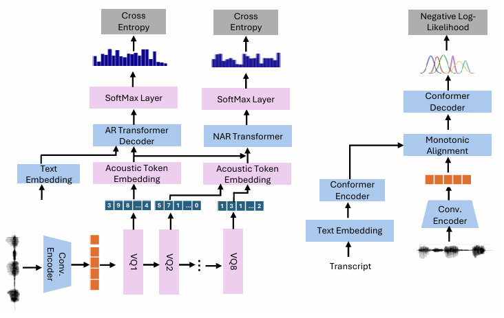 - Text-to-Speech (TTS)에서 autoregressive (AR) modeling을 위해서는 일반적으로 2-stage training을 주로 채택함