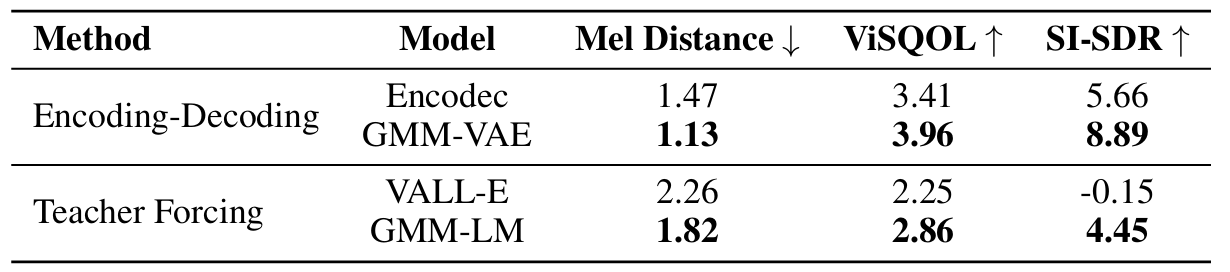 - GMM-VAE가 EnCodec 보다 speech reconstruction 측면에서 더 효과적임