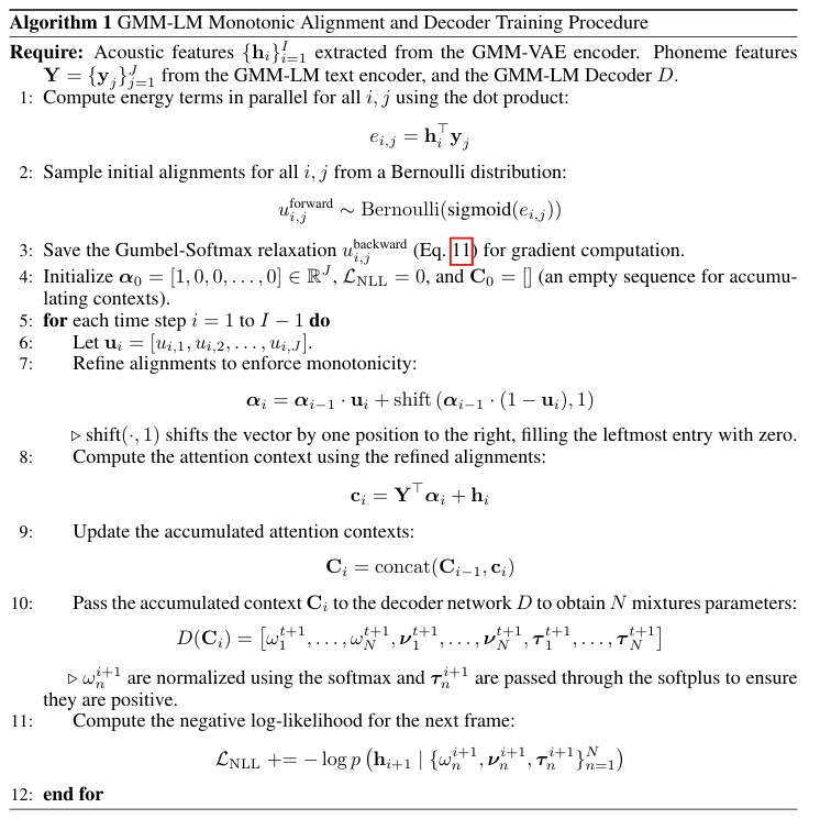 - $\alpha_{i,j}$ : encoder state를 sum up하는데 사용되는 attention weight - $\alpha_{i,j}$ expectation은 monotonic 하지만 모든 alignment step이 각 sample의 monotonic constraint를 strictly follow 하지 않음