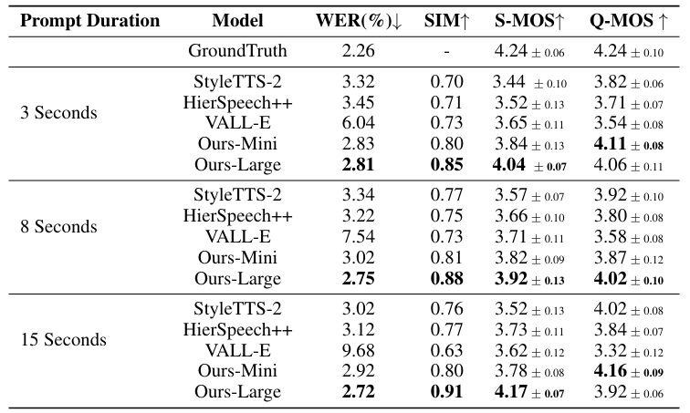- Comparisons : VALL-E, StyleTTS2, HierSpeech++