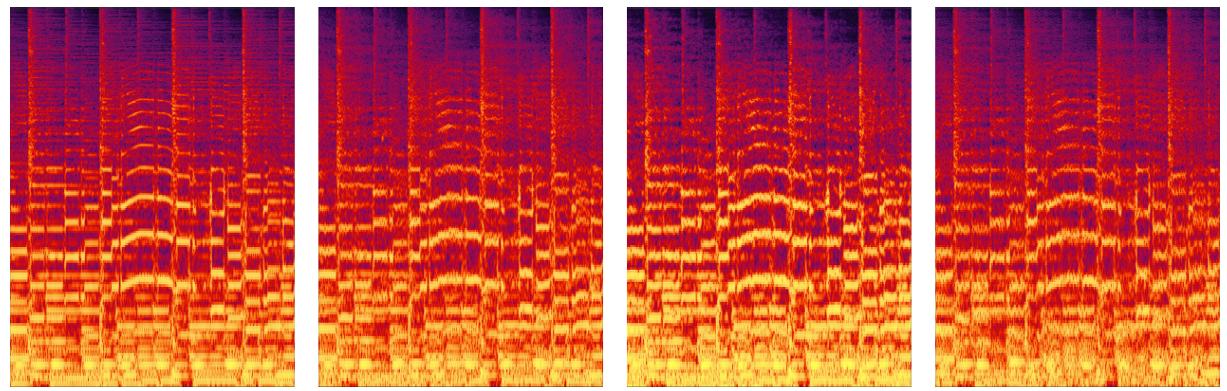 - 이후 각각 $4,4,2$로 scale 된 mean squared error를 compute 하여 model이 spectrogram 내에서 regular pattern을 학습하도록 함
