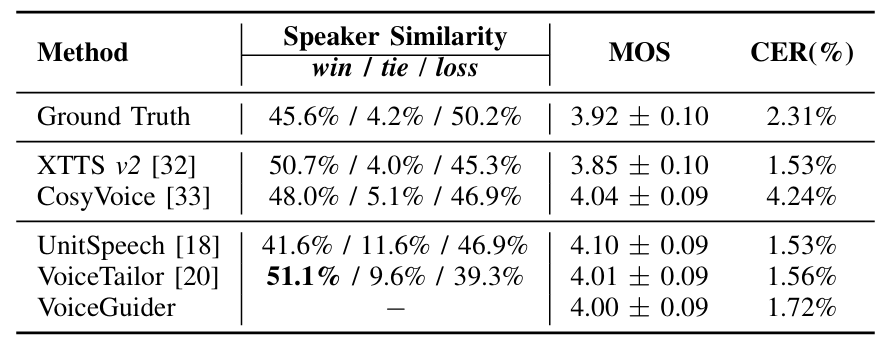 - Comparisons : XTTS, CosyVoice, UnitSpeech, VoiceTailor