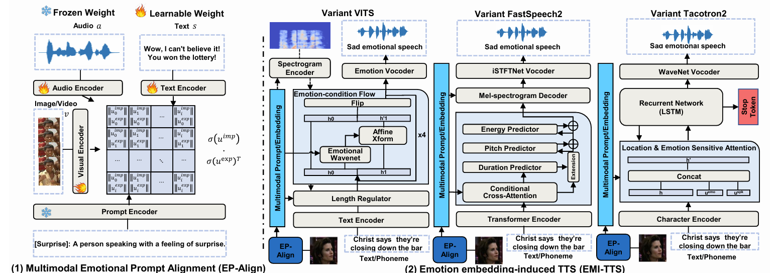 - Emotion Prompt Alignment module과 Emotion Embedding-Induced TTS module을 활용하여 multiple modality의 emotional cue를 반영
