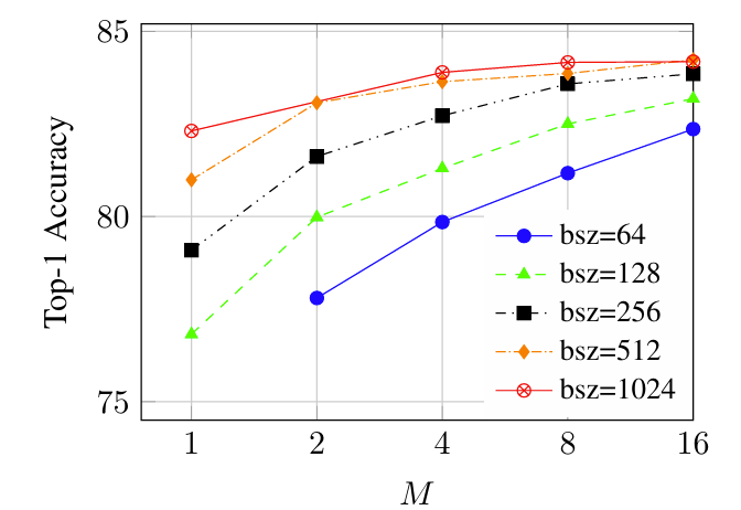 - 이는 target representation이 sample의 full unmasked version에 기반하기 때문 - 결과적으로 $M$이 증가함에 따라 target representation에 대한 computational overhead를 negligible 할 수 있음