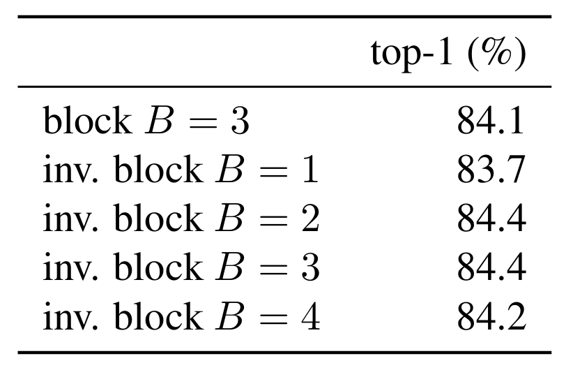 - $B=3$일 때 inverse block masking은 최적의 성능을 달성할 수 있고, $B=1$인 경우 오히려 random masking 보다 낮은 성능을 보임