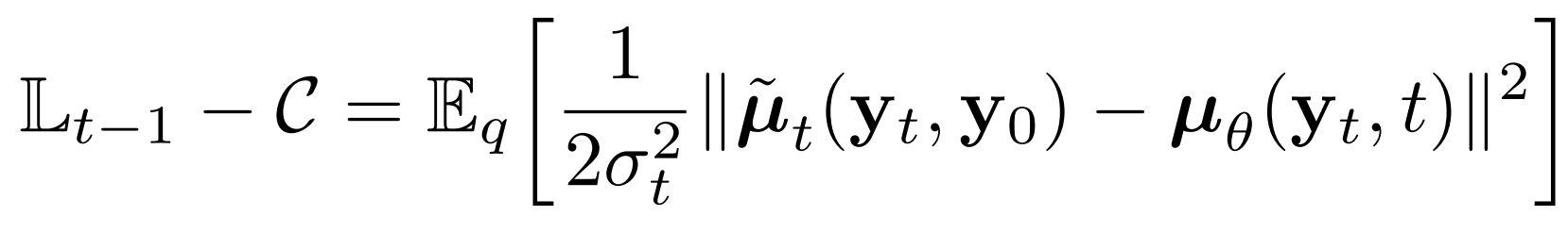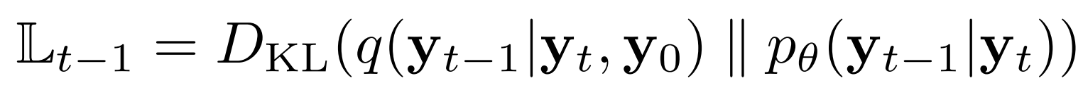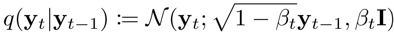 - $q(y_{t-1}|y_{t}, y_{0}) = N(y_{t-1}; \tilde{\mu}_{t}(y_{t}, y_{0}), \tilde{\beta}_{t}I)$