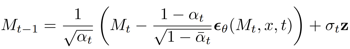 - $M_{k}$를 $M_{0}$로 변환하는 것은 Gaussian noise $M_{T}$를 $M_{0}$로 변환하는 것보다 쉽기 때문 ($k<T$) - Inference 단계에서,