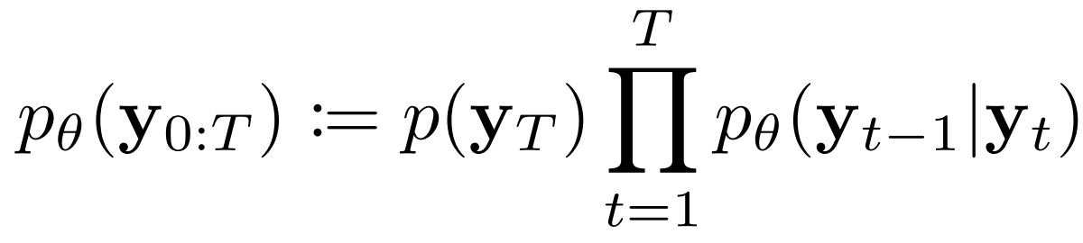 - 이때 전체 reverse process는 아래와 같이 정의됨