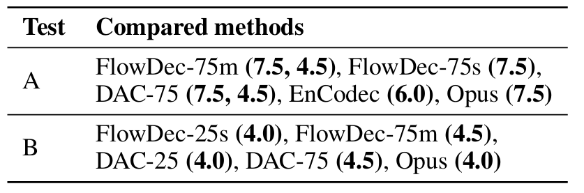 - Subjective evaluation 측면에서도 FlowDec이 가장 우수함
