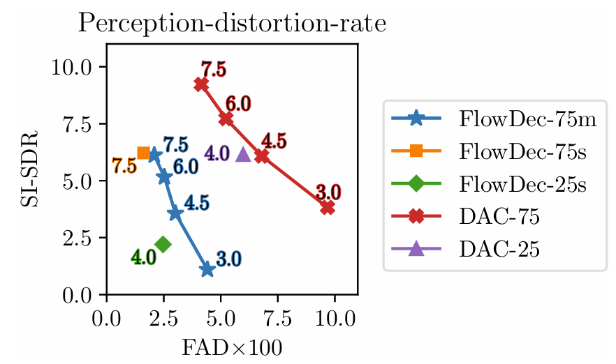 - Perception-Distortion trade-off 측면에서도 FlowDec은 DAC 보다 더 robust 함