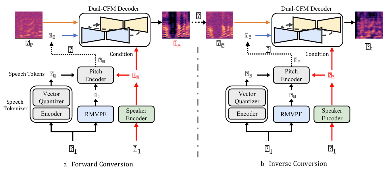 - 따라서 논문은 PitchCFM, VoiceCFM을 포함하는 Dual-CFM decoder를 구성함