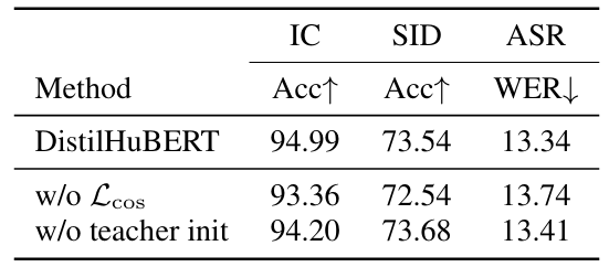 - 결과적으로 HuBERT 대비 75%의 model size 절감과 73%의 추론 속도 개선을 달성