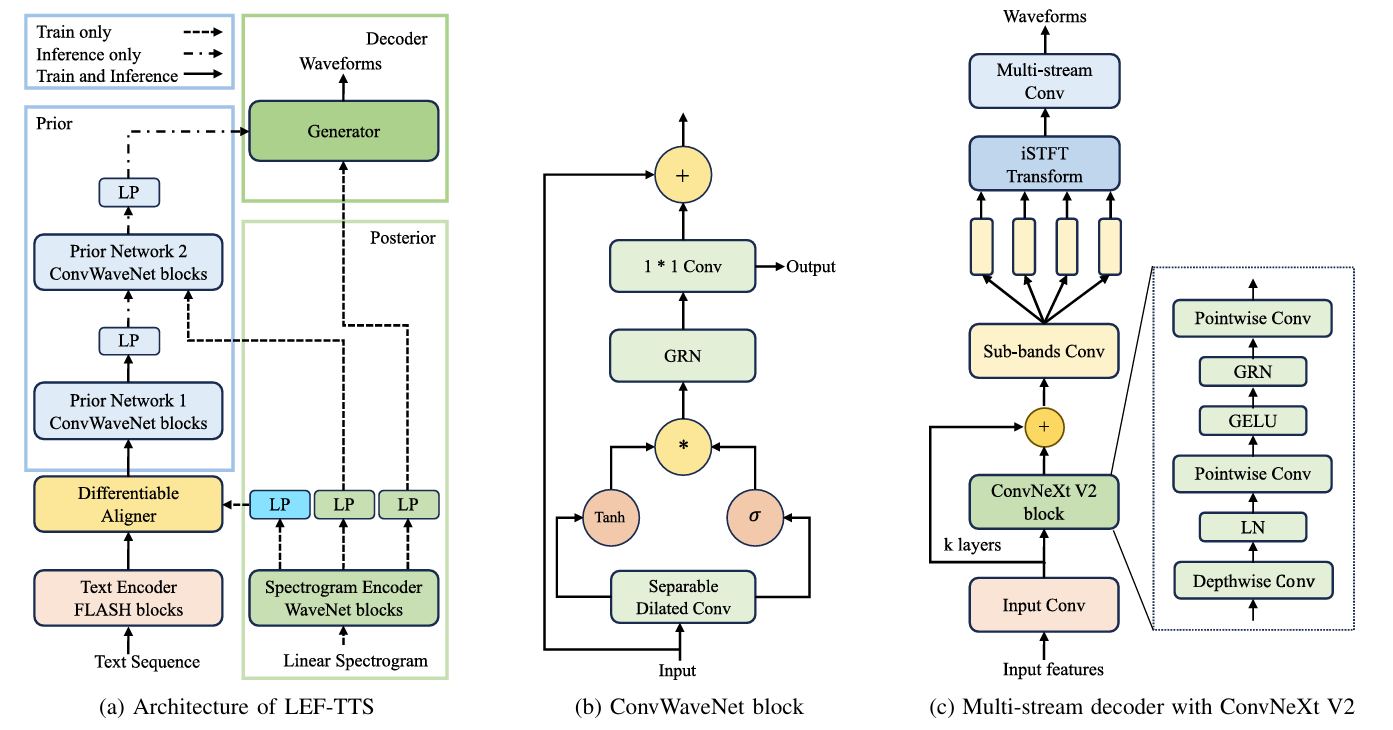- EfficientTTS2를 기반으로 FLASH, ConvWaveNet, Multi-Stream Decoder를 도입한 lightweight TTS model