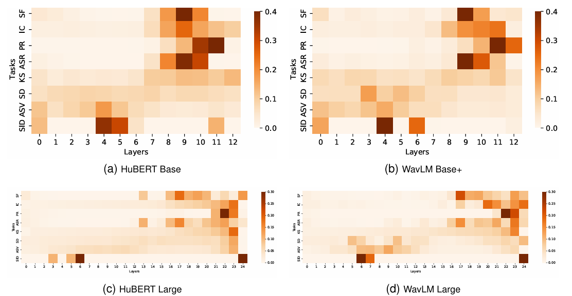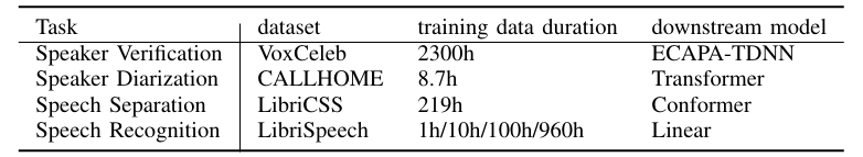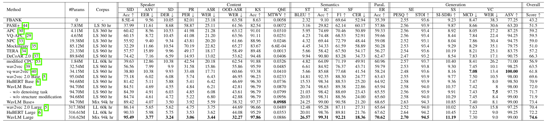 - 각 downstream task에 대해 WavLM이 가장 우수한 성능을 달성함