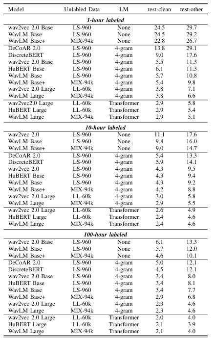 - Speech recognition task에서도 WavLM이 가장 적합함