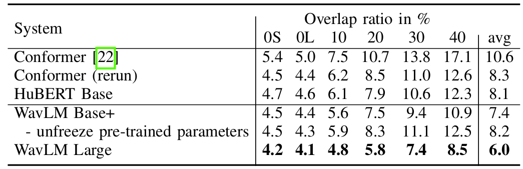- 마찬가지로 diarization에서도 WavLM이 가장 우수한 성능을 달성함