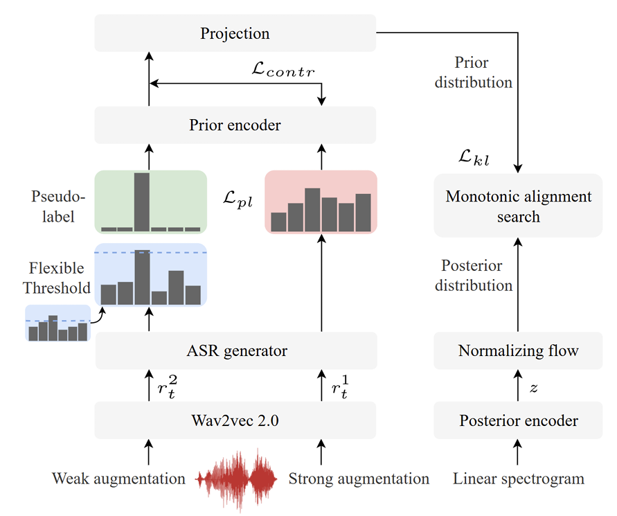 - 이를 통해 prior encoder는 ASR generator에 적용된 pseudo-label loss와 관계없이 generalized feature sequence를 receive 할 수 있음