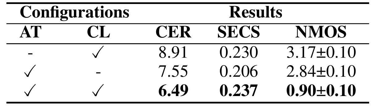 - Adaptive Thresholding method를 통해 pseudo-label을 생성하는 criterion을 구축하고 contrastive task를 통해 semantic, speech information을 decouple 하여 better prior condition을 획득