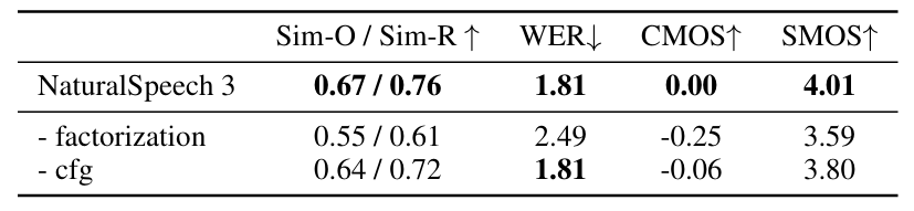 - Prosody Similarity 측면에서도 NaturalSpeech3가 우수한 성능을 보임