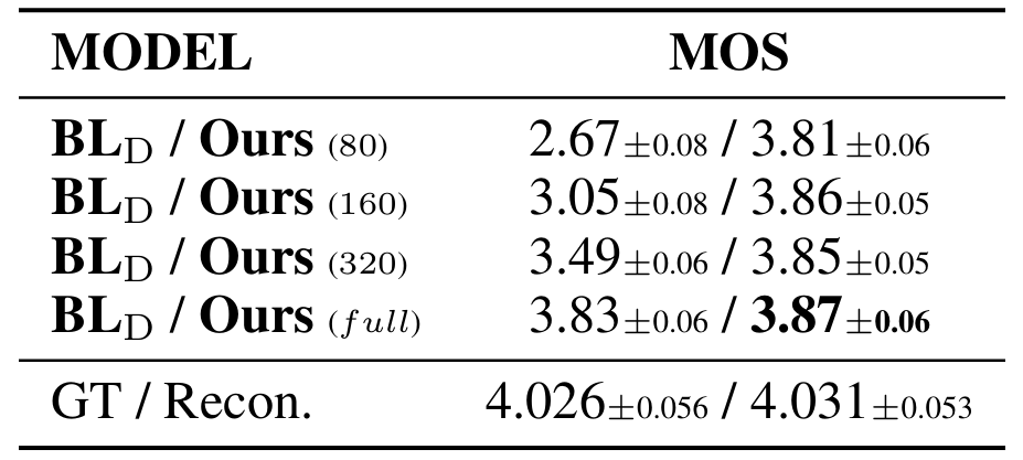 - HiFi-GAN $\mathbf{BL}_{H}$과 비교하여 NANSY++ backbone이 더 우수한 reconstruction 성능을 보임