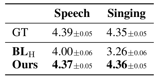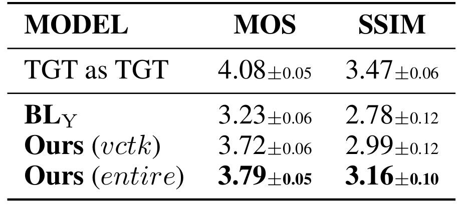 - NANSY++는 YourTTS $\mathbf{BL}_{Y}$보다 더 우수한 VC 성능을 달성함