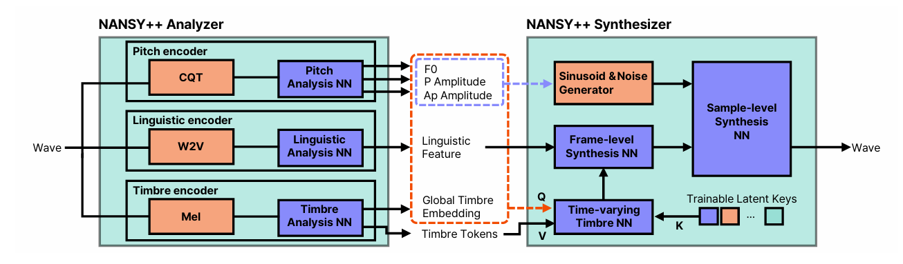 - 즉, NANSY++는 2가지 self-supervised pitch estimation method를 end-to-end analysis-synthesis training loop에 integrate 함으로써 synthetic data 없이 absolute pitch estimation을 수행할 수 있음