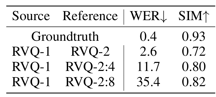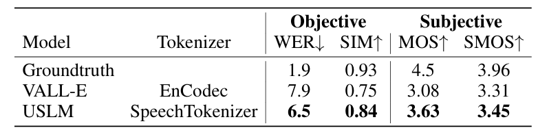 - Zero-shot TTS 측면에서도 SpeechTokenizer를 사용하는 경우 더 나은 성능을 달성함