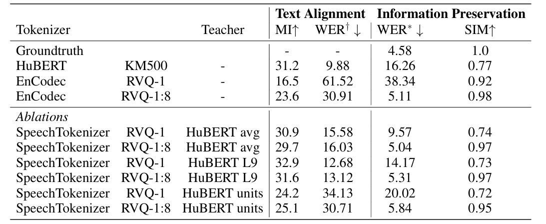 - 즉, ideal speech token은 strong text alignment와 speech information의 effective preservation이 가능해야 함