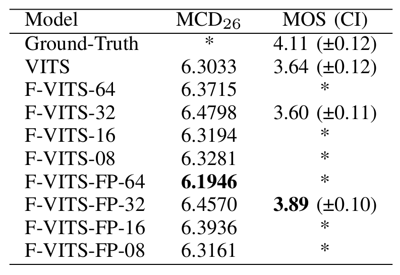 - 전체적으로 Factorized-VITS가 우수한 성능을 보임