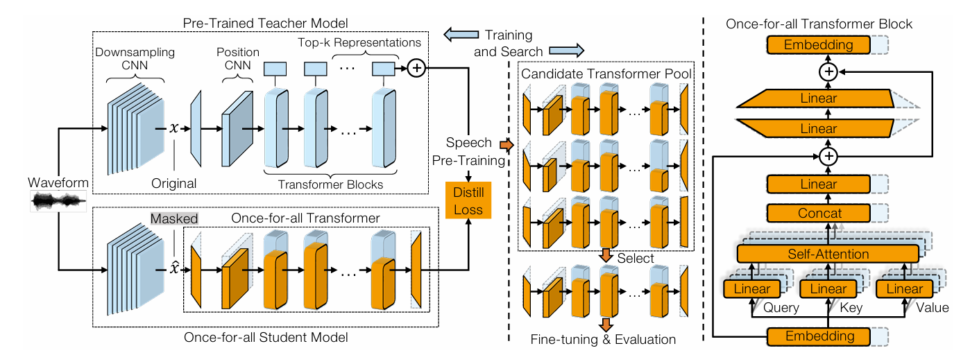 - Once-for-All Transformer compression framework를 활용하여 structured parameter를 pruning
