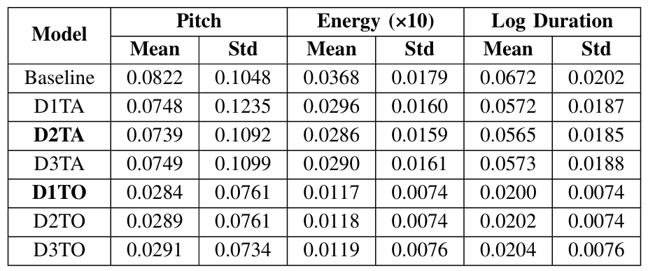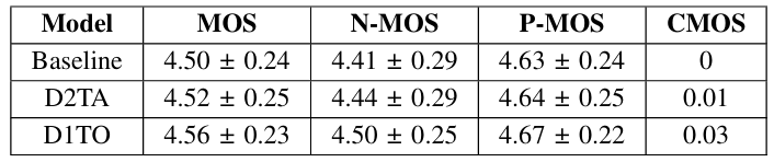 - MOS 측면에서 D2TA, D1TO 모두 baseline 보다 우수한 성능을 보임
