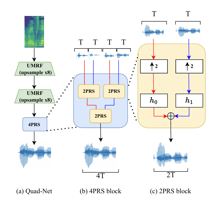 - Upsampling Multi-Receptive Field Fusion (UMRF) module과 4-channel Perfect Reconstruction Synthesis (4RPS) block을 integrate