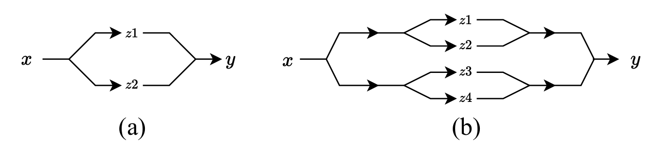 - (b)에서 signal $x$는 2개의 signal로 decompose 되고 4개의 signal $z_{1},..., z_{4}$로 decompose 된 후 reconstruct 됨