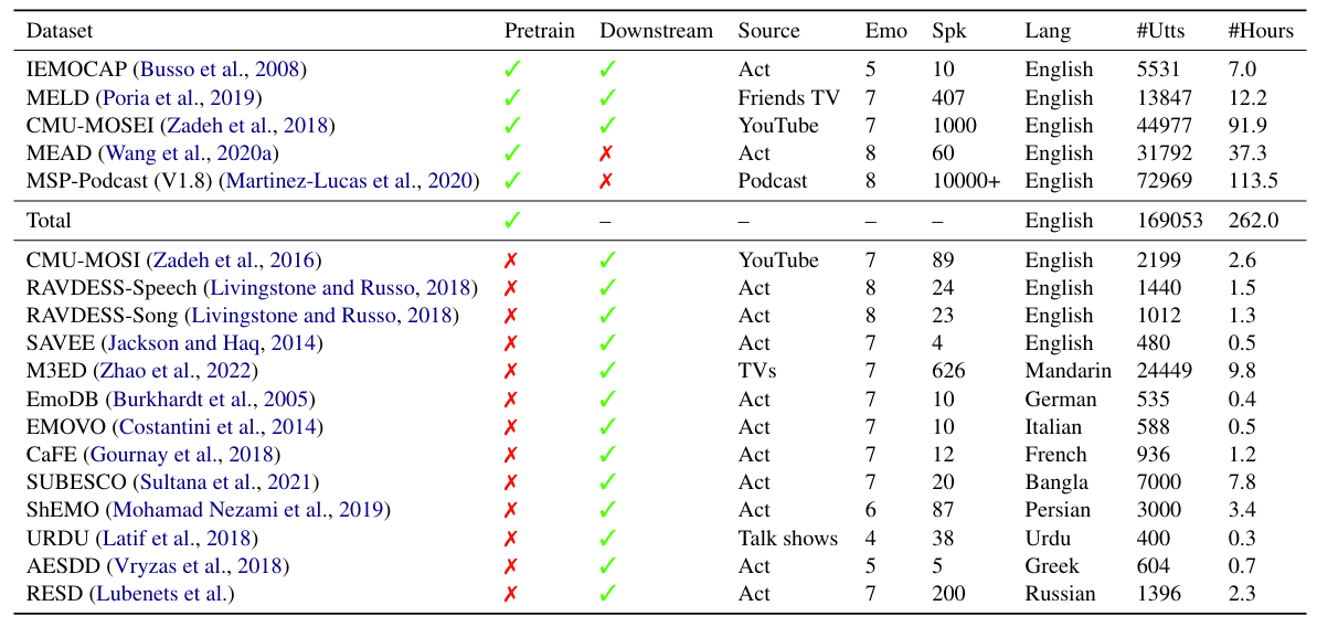 - Emotion2Vec은 English dataset에서 우수한 성능을 보임