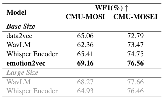 - Emotion Prediction in Conversation task에서도 Emotion2Vec이 효과적임