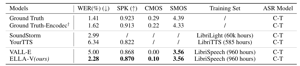 - ELLA-V는 VALL-E의 two-stage framework를 따르고, zero-shot TTS를 conditional language modeling task로 취급함