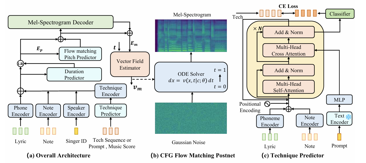 - Flow-matching model을 기반으로 한 Technique-Controllable SVS model