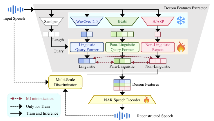 - Decom Features-to-Speec stage에서는 reconstructed Decom Feature를 final speech output으로 합성함