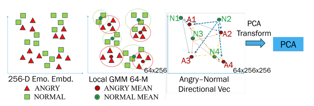 - 이후 각 emotion에 대한 GMM feature를 추출하고, Angry/Happy/Sad embedding과 Neutral embedding 간에 pairwise substraction을 수행함