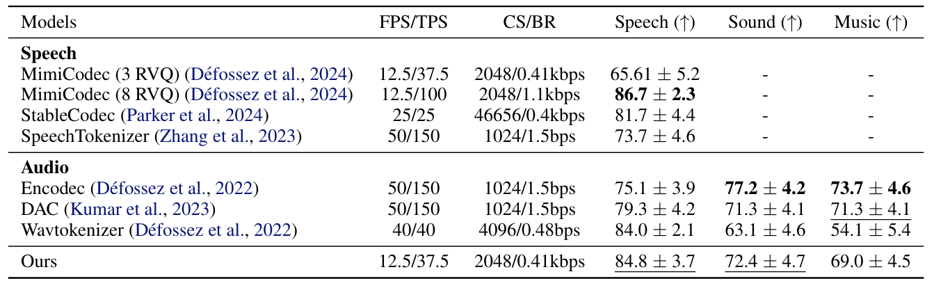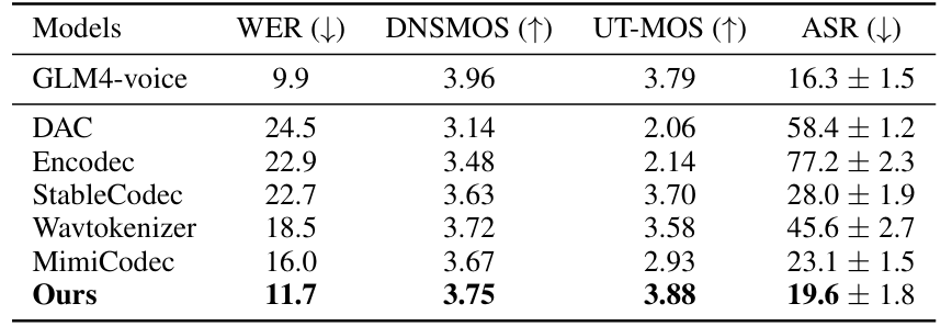 - Comparisons : HuBERT, WavLM, EnCodec, DAC, WavTokenizer, StableCodec