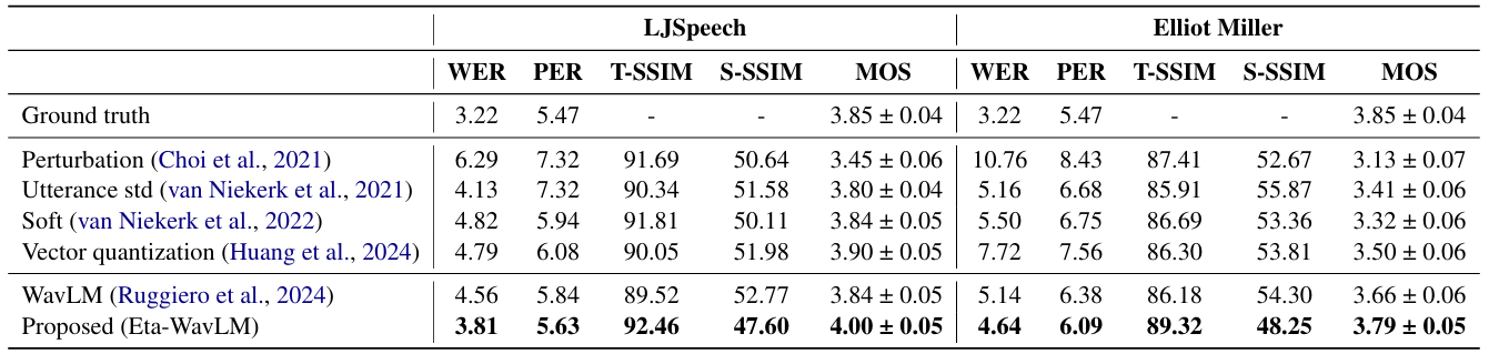 - Voice Conversion task에 대해, Eta-WavLM을 사용하면 뛰어난 성능을 달성할 수 있음