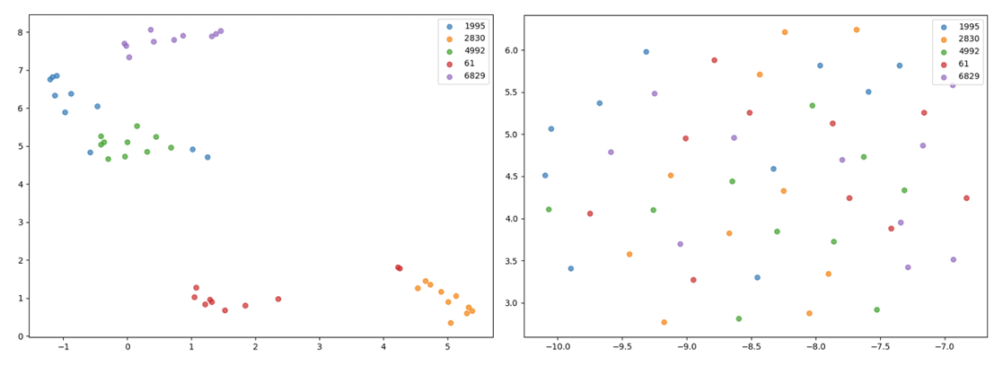 - UMAP projection 측면에서 Eta-WavLM representation은 discernible speaker cluster가 나타나지 않음