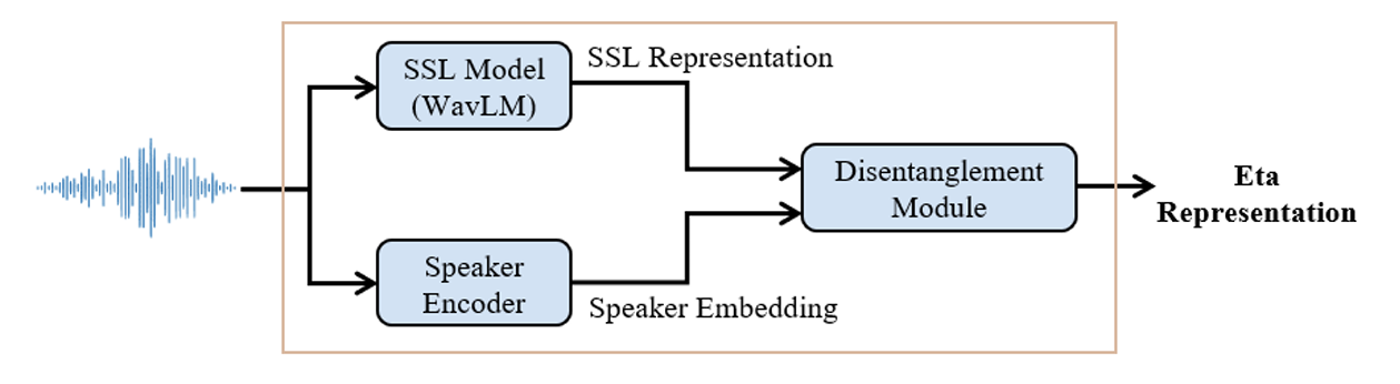- Eta-WavLM은 disentangled $\text{eta}$ representation을 추출하는 것을 목표로 다음 3가지 component로 구성됨: