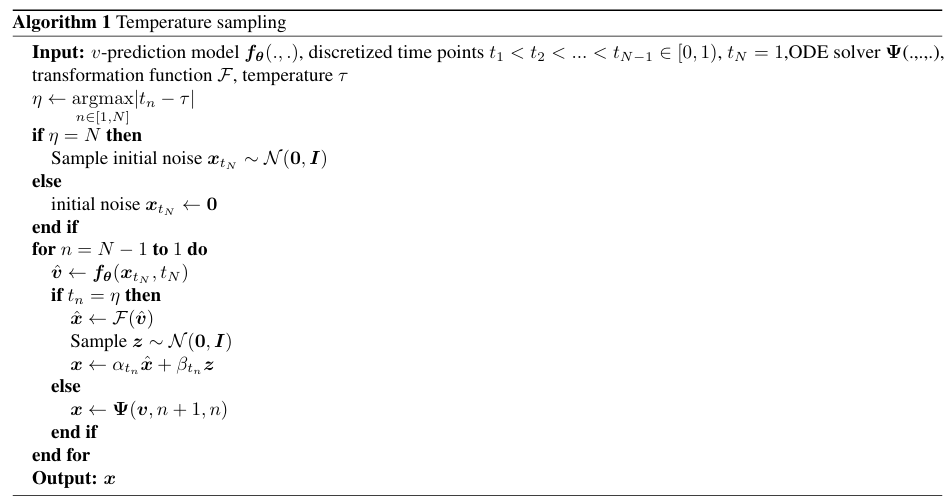 - Temperature $\tau \in[0,1]$을 diffusion의 reverse ODE solving에서 noise를 introduce 하는 time point로 정의하자