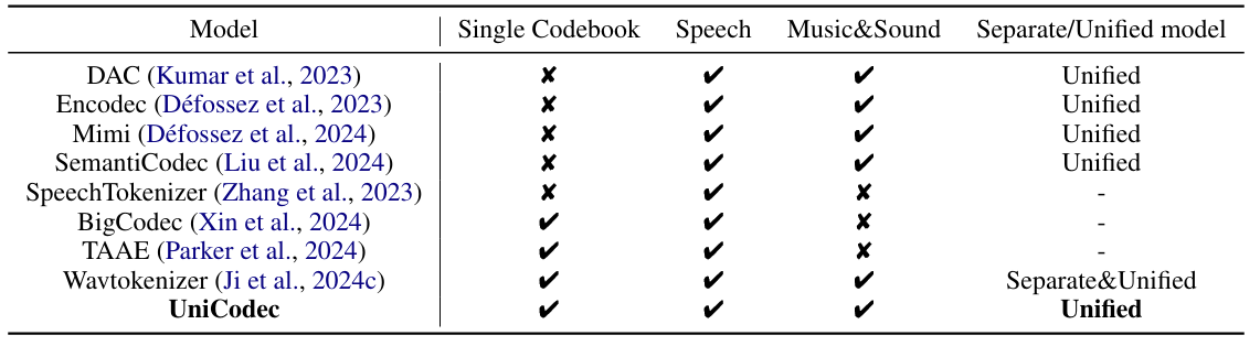 -> 그래서 다양한 audio domain과 low-bitrate, high acoustic reconstruction을 지원하는 single codebook audio codec인 UniCodec을 제안