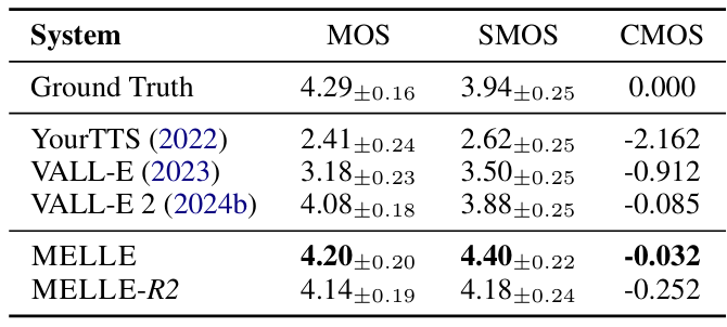 - MOS 측면에서도 MELLE가 가장 뛰어남